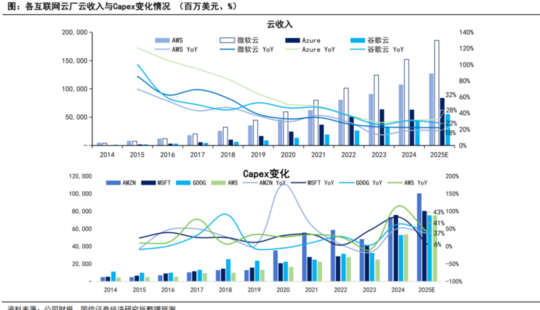 谷歌也在加码。它已经把2025年资本支出预期上调到了910-930亿,同比大幅增长了73%。从结构上看,服务器是最核心的投入方向,差不多占60%,其次是数据中心和网络设备,大概占到三分之一左右。我们能看到,谷歌在AI和云领域的态度可能正在发生变化,从以前相对谨慎的追赶者,转向一个更主动的进攻姿态。