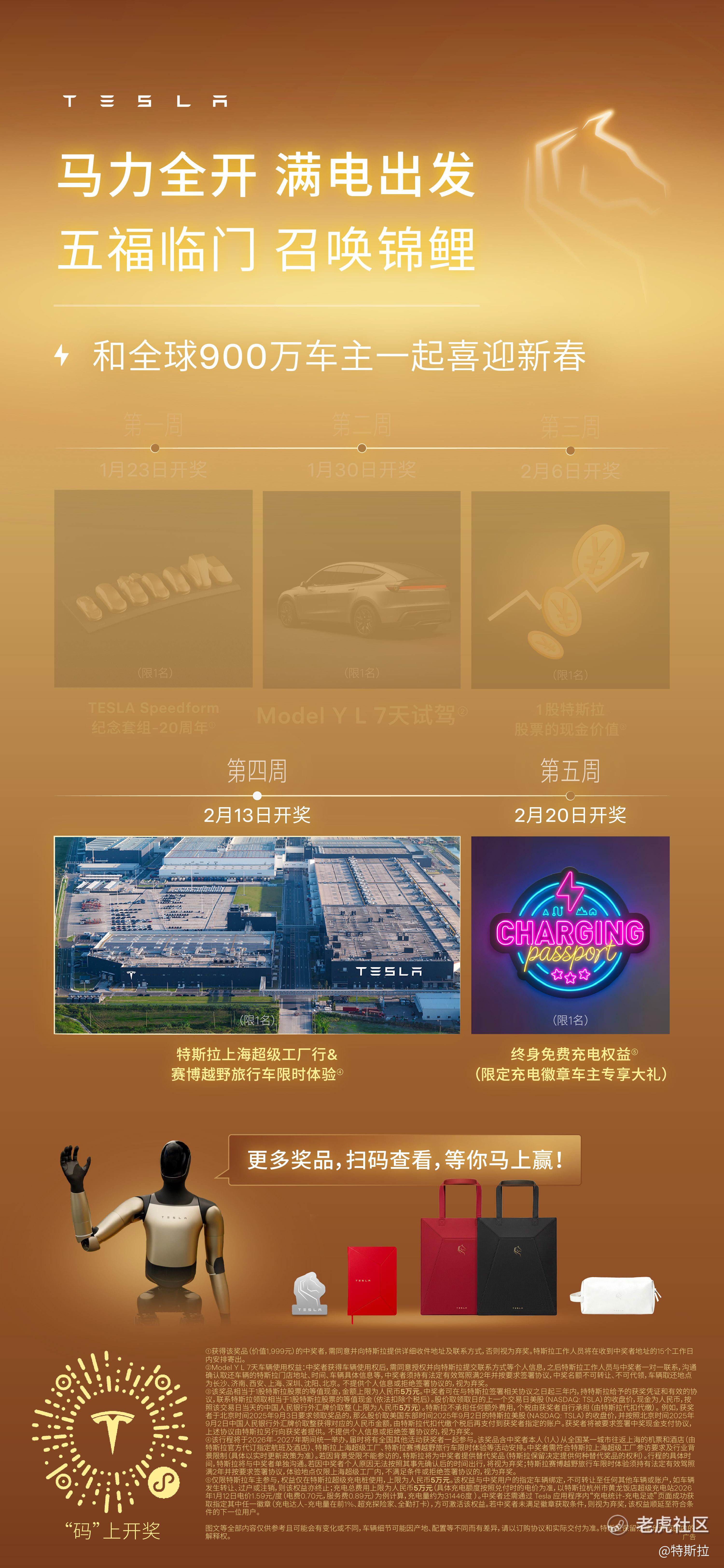 五福临门,召唤锦鲤 幸运加载中🎁本周重磅好礼 🏭特斯拉上海超级工厂行 📐赛博越野旅行车限时体验 走进现场亲眼见证👀中国智造特斯拉 30多秒下线一台整车的领先效率⚙️ 亲自感受颠覆性的赛博驾驭体验 ..... 猛戳下图👇解锁惊喜!