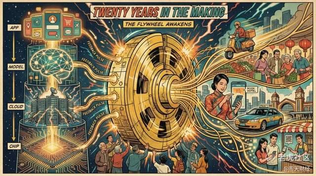 阿里的独特之处在于,它既活在未来的AI前沿,又拥有当下最完整的消费生活基建,而数千万真实用户的真实交互闭环,又会反向对芯片、云和模型、应用产生反馈,从而形成这四环协同提升的飞轮效应。最终把消费生态的厚度,转化为AI能力的厚度。