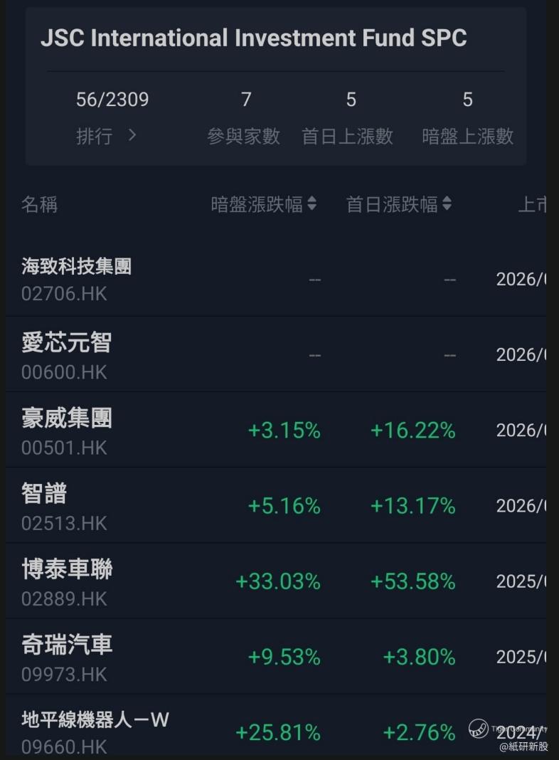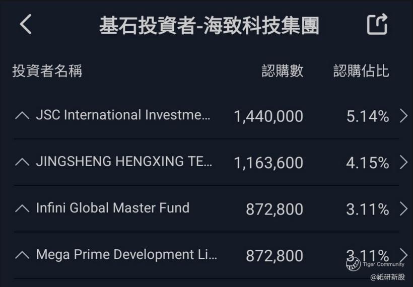 4间,占比15.51%,包括国内外基构,其中JSC、无极资本、Mega Prime较知名
