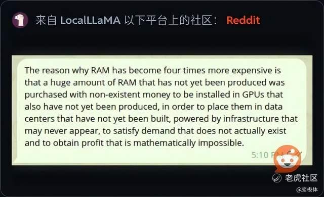 于是,关于内存泡沫的说法,在网上疯狂流传:内存价格之所以涨了四倍,是因为有人用根本不存在的钱,买下了大量尚未生产出来的内存,准备装进同样尚未生产出来的GPU里,再放进尚未建成的数据中心,依赖可能永远不会出现的基础设施供电,以满足实际并不存在的需求,从而获得数学上不可能实现的利润。