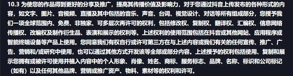 答案是肯定的。因为抖音的用户服务协议中早已写明: