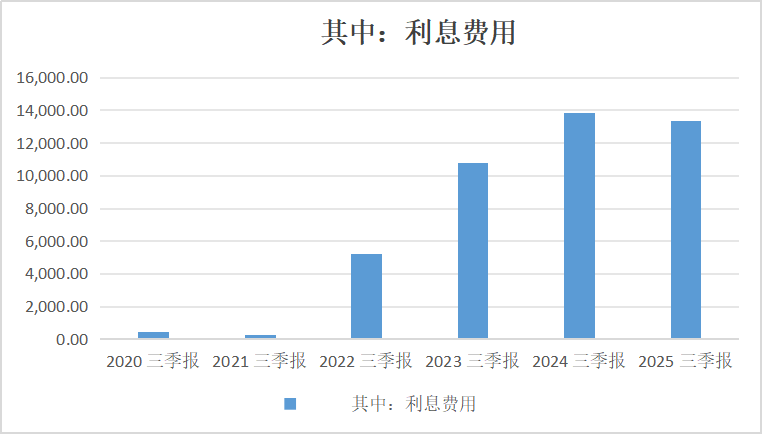 公司为布局磷酸铁锂、钠电材料等新业务持续投入,2025年前三季度资本支出预计超过30亿元;同时,营收下滑导致经营性现金流紧张,不得不增加有息负债,财务费用持续攀升。2025年第三季度,公司财务费用达9551.99万元,同比增长7.88%,成为侵蚀利润的"隐形杀手"。