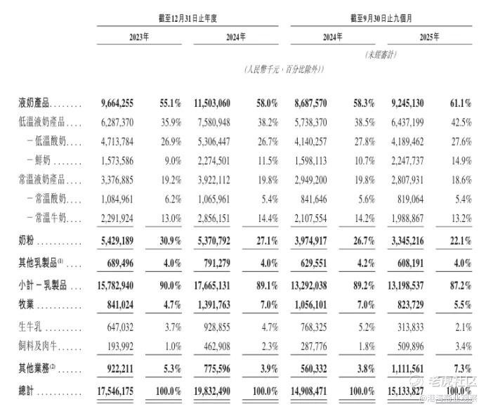 财务数据显示,2023年至2024年及2025年1-9月(报告期内)君乐宝营业收入分别约175.46亿元、198.32亿元和151.34亿元,净利润分别为-0.21亿元、10.17亿元、8.37亿元,经调整净利润分别为6.03亿元、11.61亿元、9.45亿元,毛利率分别为34.2%、34.7%、32.0%。