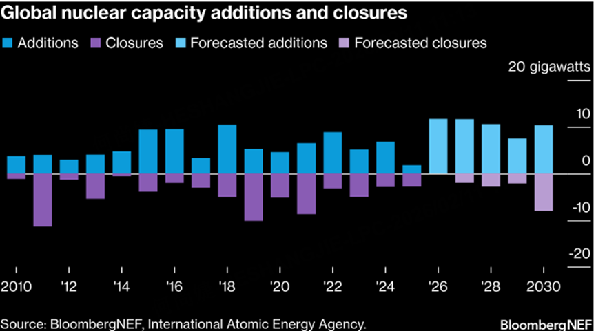 与此同时,美国能源部继续通过贷款担保和示范项目支持核电,包括先进反应堆与存量核电站延寿重启。
