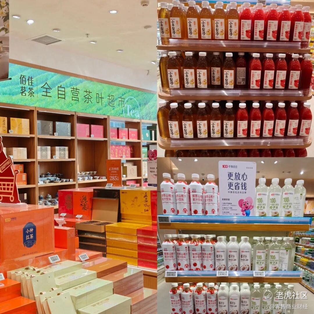 走进华豫佰佳的港区新店,「零售商业财经」从入口处就能感受到“华豫佰佳自营”的强烈存在感,比如一进门右手边就是华豫佰佳全自营的茶叶超市、店内主动线上有大量货架和堆头都放满了华豫佰佳的自营标品。