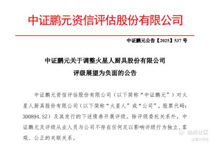 资本市场的寒意,还体现在评级机构的预警中。2025年11月12日,中证鹏元资信评估股份有限公司发布公告,将火星人主体信用等级维持为AA-,但将“火星转债”的评级展望调整为负面。中证鹏元强调,若公司持续亏损、经营活动现金流进一步净流出,将加大公司财务风险。