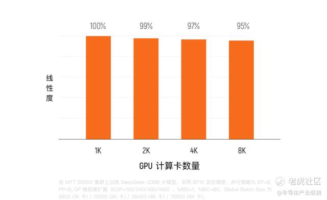 来自互联网厂商场景的实测反馈,进一步印证了其在算力上的优势。数据显示,在典型端到端推理及训练任务中,MTT S5000的性能约为竞品H20的2.5倍。分析指出,这主要得益于其高达1000 TFLOPS的单卡算力,在绝大多数计算密集型场景中,该卡不仅能提供更强劲的算力输出,也在整体性价比上展现出显著优势。