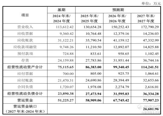 振宏股份也于北交所第二轮审核问询回复函中,基于2024年度数据披露2025年度至2027年度的业绩预测,公司营业收入分别为13.07亿元、15.03亿元、17.28亿元。