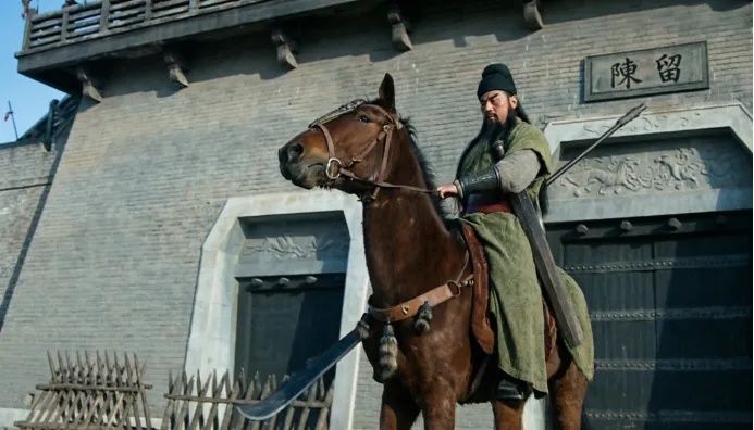 提示词:这是新三国中关羽出战华雄的场景,不过编剧出了一个小小的错误,城楼的牌子上应该写的是