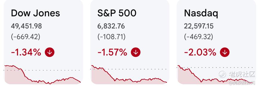 周四美股在连续几日的技术性回调之后出现加速下跌。标普500下跌1.6%,盘中跌破50日均线;纳指大跌2%,纳斯达克100指数录得自去年4月以来最差的三日表现,并且在过去10个交易日中第五次单日跌超1%。这一走势凸显市场情绪已从谨慎转向明显恐慌