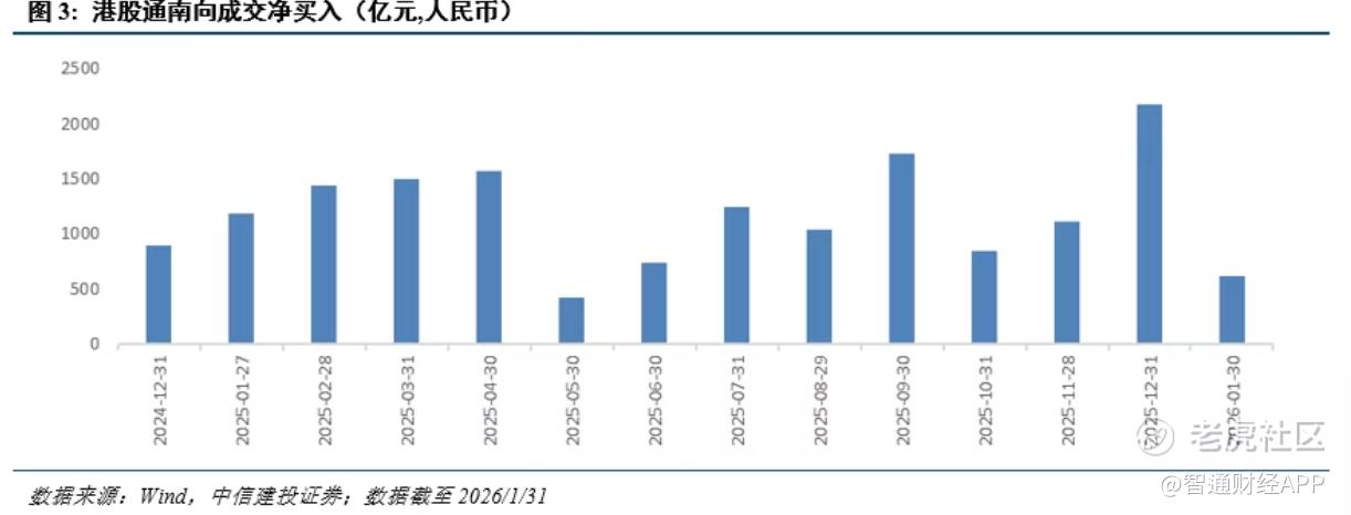 南向资金决策锚点包含股息率、ROE稳定性、自由现金流生成能力、估值分位。交易易特征呈现连续增持、逆势买入、持仓稳定。以建设银行为例,2025年在股价震荡区间持续净买入73.89亿股,持股市值增加558亿港元。“越跌越买”并非情绪宣泄,而是股息率随股价下跌提升、安全边际持续强化的配置盘行为。