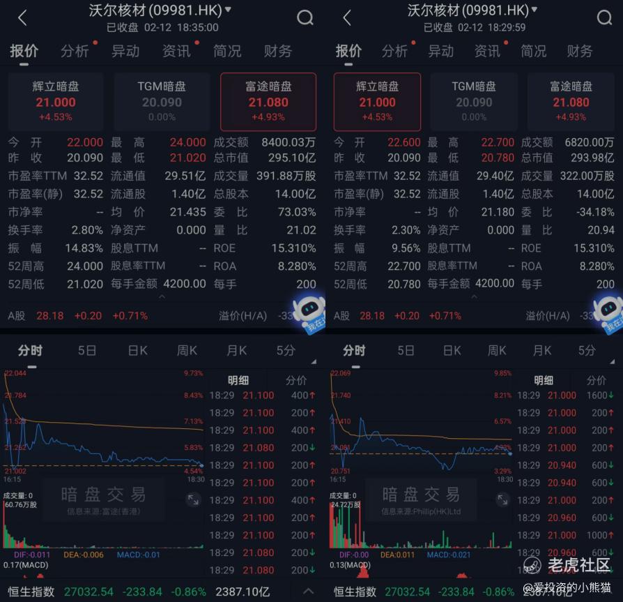 2. 再看看沃尔核材(09981.HK)暗盘情况