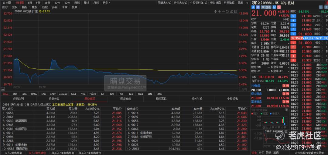 二、沃尔核材(09981.HK):全球高速铜缆龙头,平稳开局,公开发售获569倍超额认购,上市首日获纳入港股通。开盘仅高开0.05%,报20.1港元,之后快速拉升,盘中最高触及21.8港元,随后在21-21.5港元区间波动,走势相对稳健