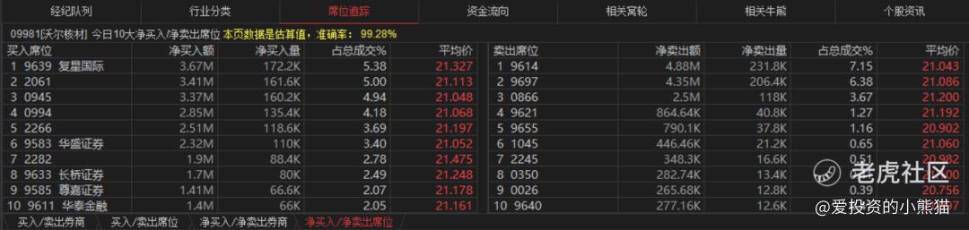 沃尔核材(09981.HK)买盘席位有9639、2061、0945、0994等,卖盘第一席位是9614,0866在卖盘第三席位。