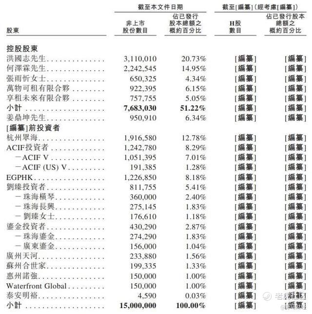 截至目前,洪国志、何泽霖及张雨忻作为一致行动人,合计控制人人租机51.22%的股份。其中,洪国志作为董事长、执行董事、首席执行官兼总经理,直接持股20.73%,并通过其控制的两个员工持股平台间接控股11.2%,何泽霖与张雨忻则分别持股14.95%和4.34%。此外,杭州众海持股12.78%,是公司第一大外部股东。