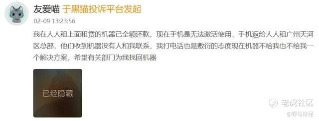 比如有用户在2026年2月9日投诉表示,自己已完成对人人租上租赁手机的全额还款,但手机无法激活使用,将手机寄回人人租广州天河总部后,未有工作人员主动联系,且工作人员在电话沟通中态度敷衍,诉求是找回手机。目前该投诉仍在商家处理过程中。