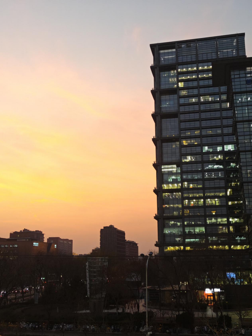 我记得是去年9月初,我们跑通了基础设施智能体蜂群中的第一个Agent,当时心情很激动。结束会议后,看到窗外火焰色的夕阳觉得很美,就拿起手机拍了一张。