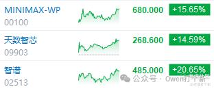 海致暗盘如果捞货还能吃到210~240%之间的肉!不过海致能首日这么坚挺也是外围市场表现不错的缘故,AI应用股涨不少,还有一堆韩国佬下来抄货,看MINMAX、智谱科技近几日表现,不少跌挺惨的票也跟踪拉了一波!