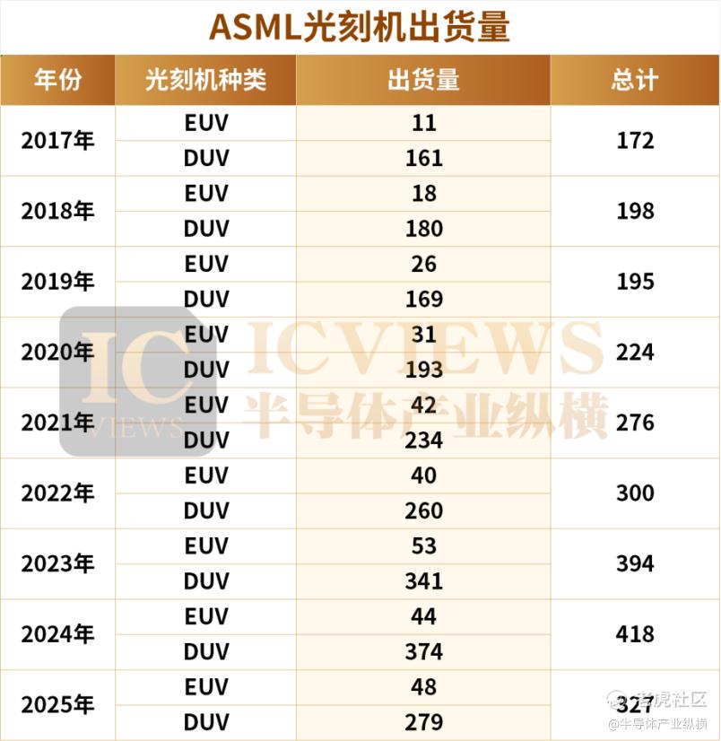 回顾过往,2016年及以前,ASML的EUV光刻机年出货量仅1-5台,DUV光刻机年出货量约150台;2017年后,EUV出货量逐年攀升,2023年达到峰值53台,同期DUV出货341台;2024年,ASML光刻机总出货量创下历史最高,为418台。