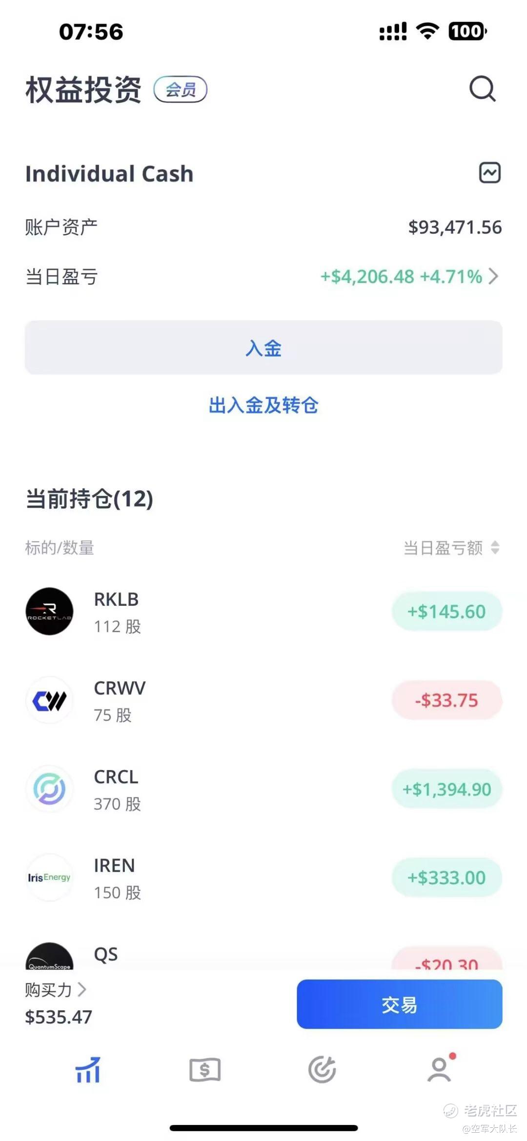 我的实盘账户又回到了9.3万美元,本金10万美元,还亏了7000美元,我现在就是想CRCL能保本出来,要到74才能保本,然后出来的资金又把ASTS跟RKLB买回来,反正就是每个行业我都要布局一个股票。