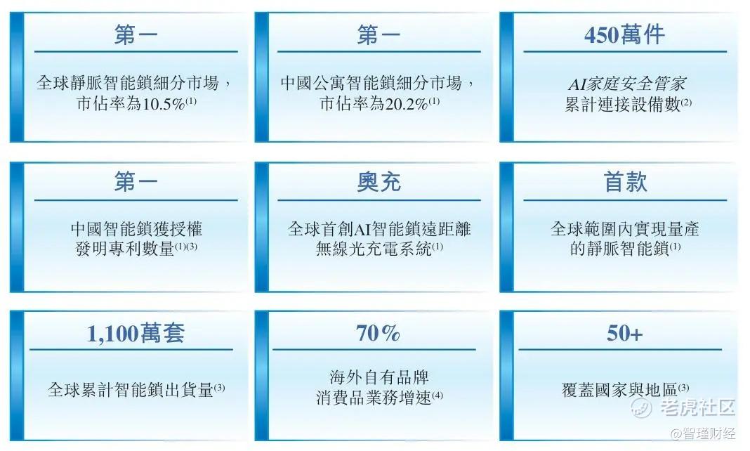 根据弗若斯特沙利文资料,鹿客科技全球累计智能锁出货量已达1100万套,2024年出货量为130万套,以2.6%的市场份额位列全球第四;其中静脉智能锁的出货量位居全球第一,市场占有率为10.5%。