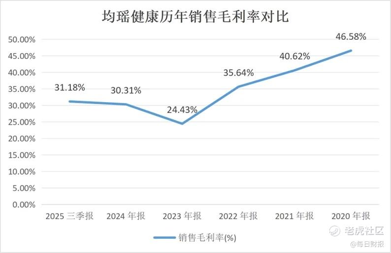 值得注意的是,供应链属于低毛利率业务,2024年及2025年中期毛利率分别为12.62%和9.30%。均瑶健康切入供应链业务,叠加益生菌饮品毛利率减少,使得公司整体毛利率更低。2020年,其整体毛利率为46.58%,到2025年三季度末降至31.18%。