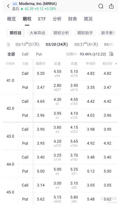 财报后MRNA的IV仍在偏高水平(MRNA 属于医药+管线驱动,历史上 IV 都不算低)。适合卖出期权赚取权利金,同时保持多头偏向的结构。我打算卖出45–40区间的短期 Put,到期日选 3–6周的,我认为MRNA当前42附近,如果我们卖40–41的Put, 概率好、费率高、风险可控。
