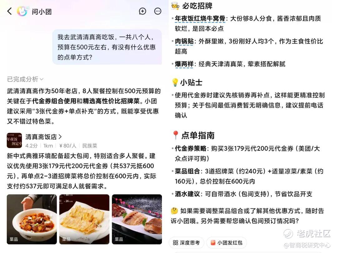 没想到,它真找到了两家合适的饭店,不仅满足了所有人的需求,还无需排队等位。
