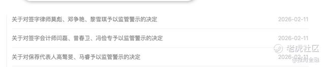 因此,中泰证券保代高骜旻、马睿,天职国际会计所签字会计师闫磊、曾春卫、冯俭,启元律所签字律师莫彪、邓争艳、黎雪琪,均被予以监管警示。
