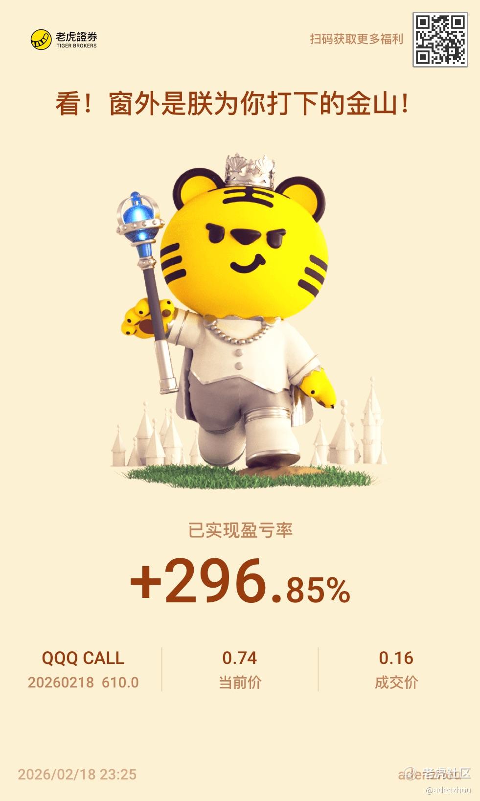 {"i18n":{"language":"zh_CN"},"data":{"magic":2,"id":534149175804848,"tweetId":"534149175804848","gmtCreate":1771428400265,"gmtModify":1771428451061,"author":{"id":4224081298176762,"idStr":"4224081298176762","authorId":4224081298176762,"authorIdStr":"4224081298176762","name":"adenzhou","avatar":"https://community-static.tradeup.com/news/default-avatar.jpg","vip":1,"userType":1,"introduction":"","boolIsFan":false,"boolIsHead":false,"crmLevel":12,"crmLevelSwitch":0,"individualDisplayBadges":[],"fanSize":1,"starInvestorFlag":false},"themes":[{"themeId":"5bfad02ab61749c8bfe6573ac7bbe8a3","categoryId":"b76d3c59fc044df59779c041b25852a6","name":"晒晒更赚钱","type":0,"rnLink":"https://laohu8.com/RN?name=RNTheme&page=/theme/detail&rndata={\"themeId\":5bfad02ab61749c8bfe6573ac7bbe8a3}&rnconfig={\"headerBarHidden\": true}","description":"晒晒你的盈亏单,秀秀虎友们的实力!","image":"https://static.tigerbbs.com/347184265ee0be8c363259951f8033cb"}],"images":[{"img":"https://static.tigerbbs.com/9d3c312626461f49b3beca78dd5cc9ed","width":"981","height":"1637"}],"coverImages":[{"img":"https://static.tigerbbs.com/9d3c312626461f49b3beca78dd5cc9ed","width":"981","height":"1637"}],"title":"","html":"<html><head></head><body><p><a href=\"https://laohu8.com/OPT/QQQ 20260218 610.0 CALL\">$QQQ 20260218 610.0 CALL$</a> </p>\n<p>跟上了这波上涨,小资金本金翻倍了,能开始玩了</p><img src=\"https://static.tigerbbs.com/9d3c312626461f49b3beca78dd5cc9ed\" tg-width=\"981\" tg-height=\"1637\"></body></html>","htmlText":"<html><head></head><body><p><a href=\"https://laohu8.com/OPT/QQQ 20260218 610.0 CALL\">$QQQ 20260218 610.0 CALL$</a> </p>\n<p>跟上了这波上涨,小资金本金翻倍了,能开始玩了</p><img src=\"https://static.tigerbbs.com/9d3c312626461f49b3beca78dd5cc9ed\" tg-width=\"981\" tg-height=\"1637\"></body></html>","text":"$QQQ 20260218 610.0 CALL$ 跟上了这波上涨,小资金本金翻倍了,能开始玩了","highlighted":1,"essential":1,"paper":1,"likeSize":1,"commentSize":0,"repostSize":0,"favoriteSize":0,"link":"https://laohu8.com/post/534149175804848","repostId":0,"isVote":1,"tweetType":1,"viewCount":9190,"commentLimit":10,"likeStatus":false,"favoriteStatus":false,"reportStatus":false,"symbols":["QQQ"],"verified":2,"subType":0,"readableState":1,"langContent":"CN","currentLanguage":"CN","warmUpFlag":false,"orderFlag":false,"shareable":true,"causeOfNotShareable":"","featuresForAnalytics":["晒单贴"],"commentAndTweetFlag":false,"andRepostAutoSelectedFlag":false,"upFlag":false,"length":64,"optionInvolvedFlag":true,"xxTargetLangEnum":"ZH_CN"},"commentList":[],"hasMoreComment":false,"orderType":2}
