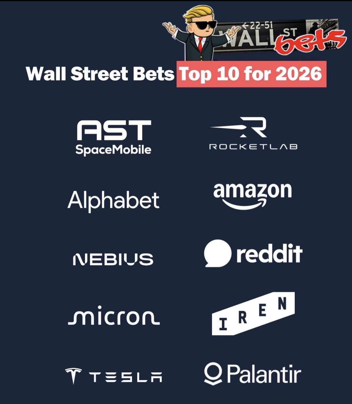 2026年选股看起来确实不错,各位老虎社区的投资者们,WSB社区选股,大家最看好哪家公司呢?你觉得还有谁能上榜?