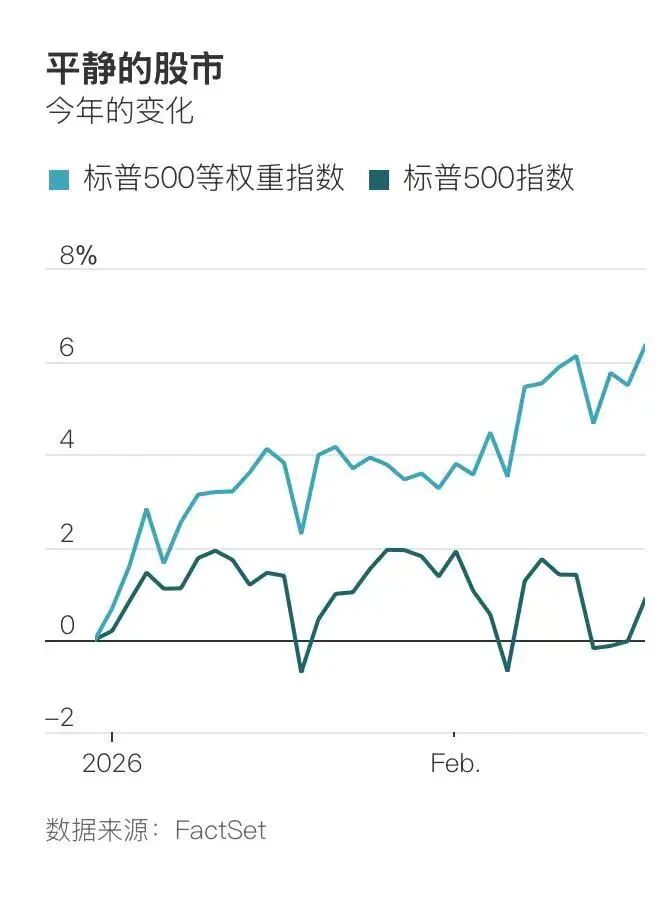 目前美国股市板块分化严重,但指数极其平静,至少从20世纪90年代中期以来的数据来看,这种情况极不寻常。