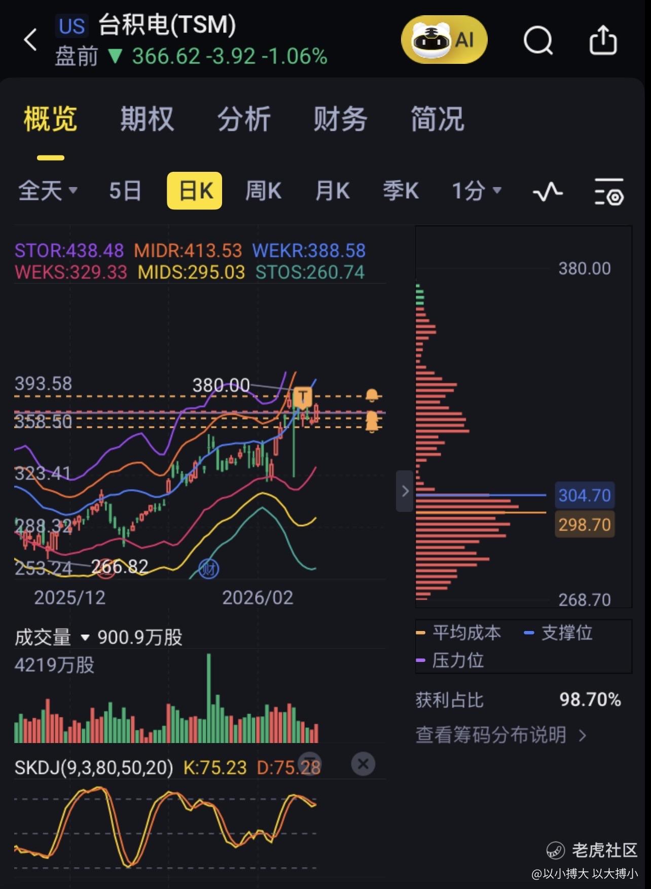 $纳斯达克(.IXIC)$ $Meta Platforms, Inc.(META)$ 已把套牢盘基本洗清,可以开始买入 $苹果(AAPL)$ 形成箱体震荡行情,可以做高抛低吸 $台积电(TSM)$ 底部筹码未动,未来还有大行情[正经]