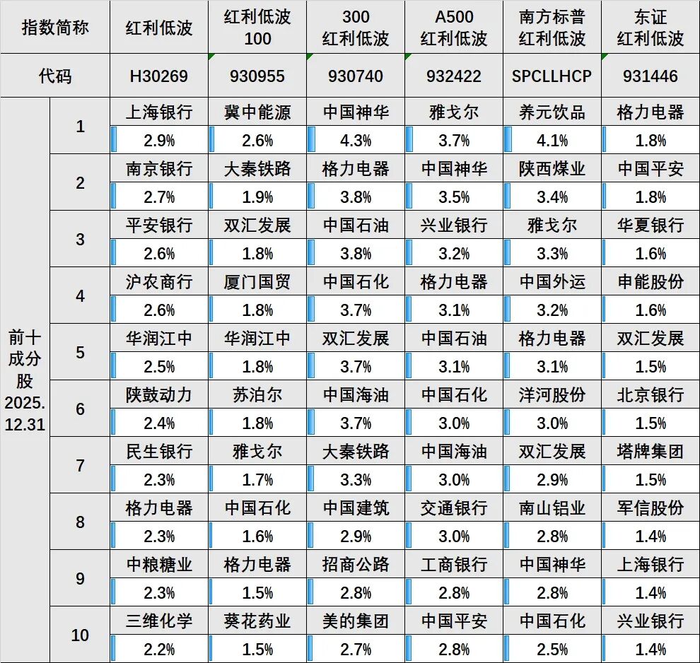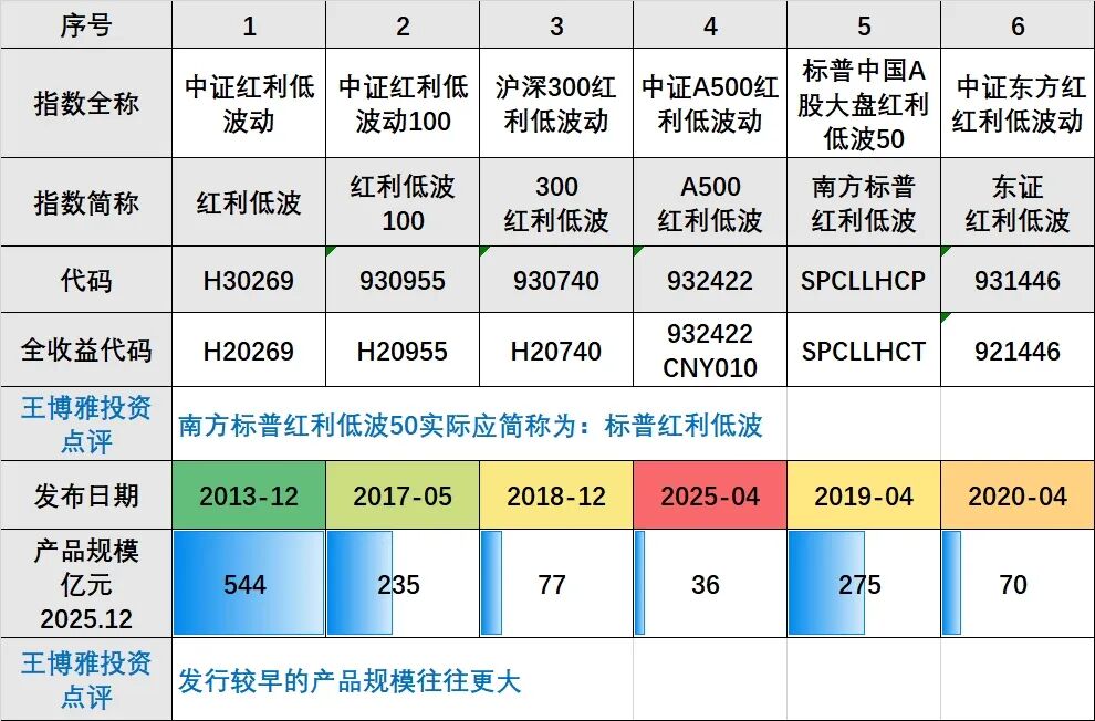 今天,我将硬核测评市面上最受关注的六大红利低波指数: