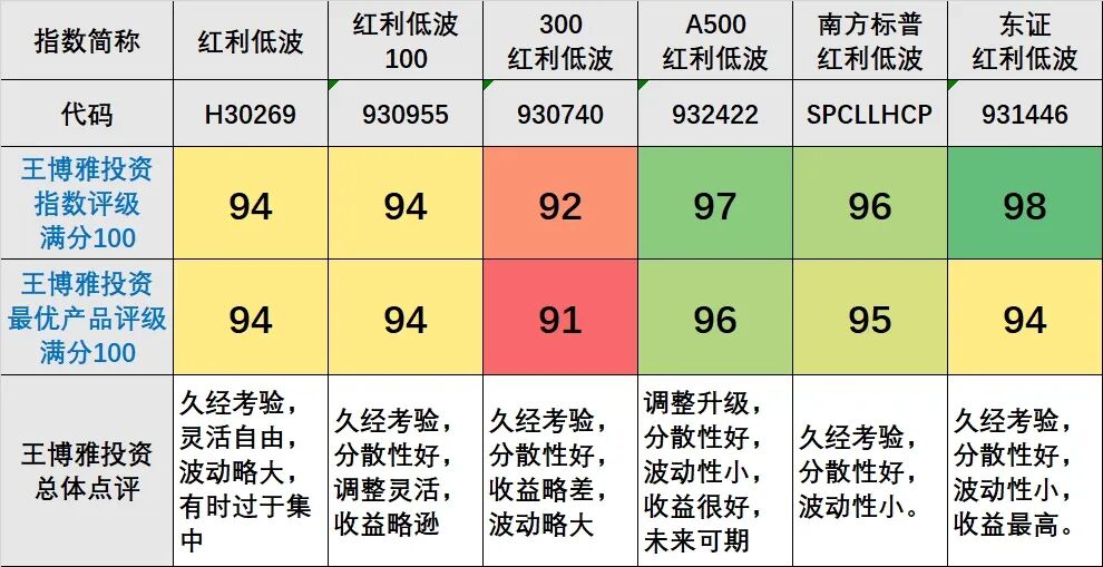 综合考虑指数规则和实际表现,同时考虑产品的实际表现,个人对红利低波类指数和产品做出了如下个人评价: