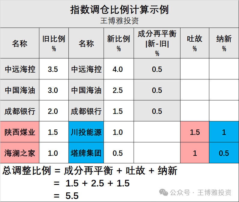 首先,我们需要明确指数调整时调仓比例怎么计算。