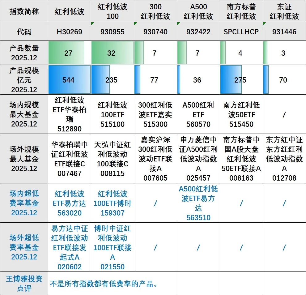 300红利低波、南方标普红利低波和东证红利低波一直都没有低费率产品推出,未来也基本不会有了,这是一大遗憾。