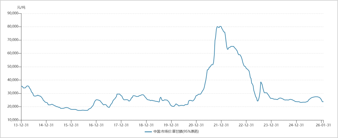 ▲草甘膦价格走势图,来源:Wind