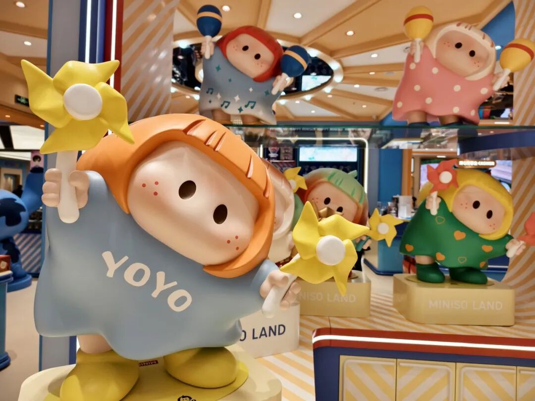 例如在文章开头提及的,MINISO LAND广州壹号店开业,YOYO的形象遍布门店内外。当地的地标建筑广州塔旁边,还有11米高的巨型YOYO雕塑。