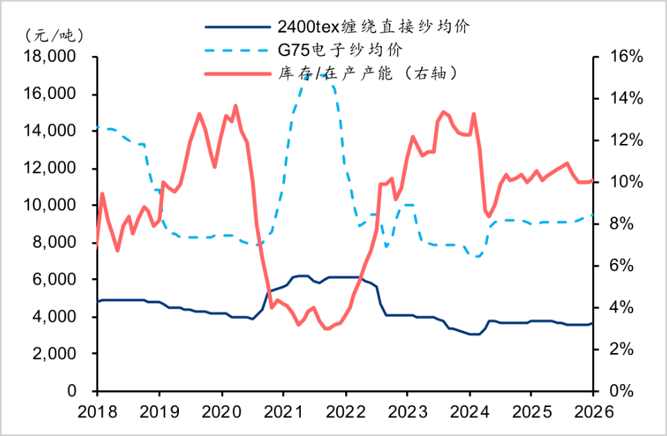 ▲玻纤价格与行业库存占比趋势,来源:华泰证券