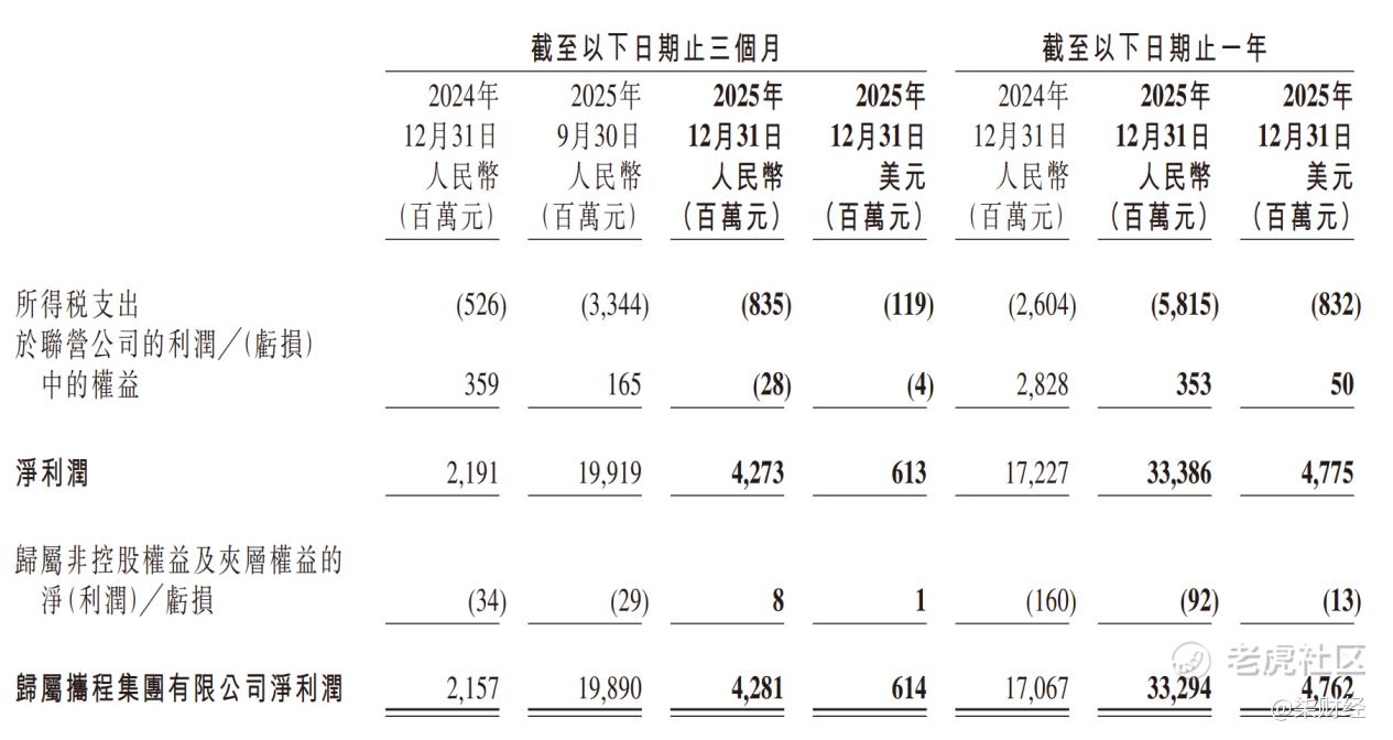 对于净利润狂飙的原因,携程在公告中解释称:主要由于2025年全年包含在其他(支出)╱收入中的投资利得199亿元(28亿美元),而2024年为11亿元。