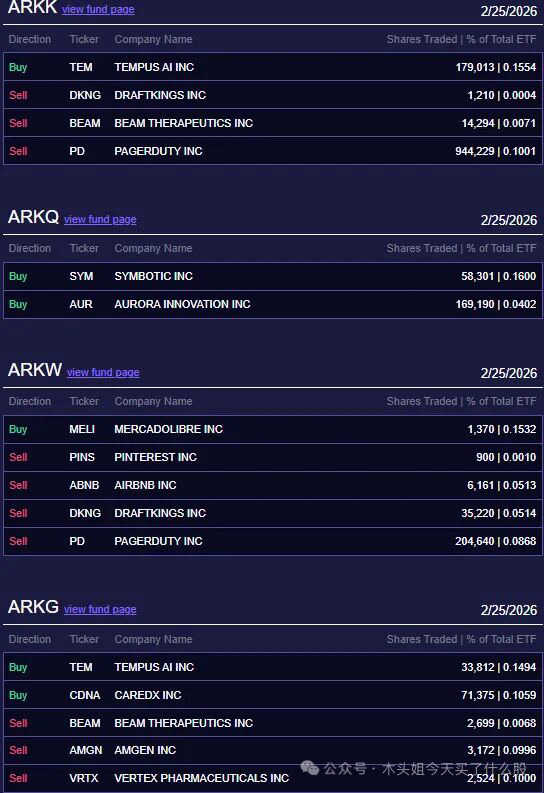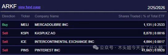卖出82万美元DKNG、51万美元BEAM、770万美元PD、75万美元PINS、81万美元ABNB、120万美元AMGN、120万美元VRTX、65万美元KSPI、64万美元ICE。