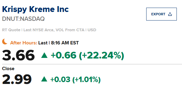 Krispy Kreme (DNUT)第四季度每股收益为0.09美元,比市场预期值0.03美元高出0.06美元;营收同比下降 2.9%至 3.924 亿美元,市场预期值3.9217 亿美元。