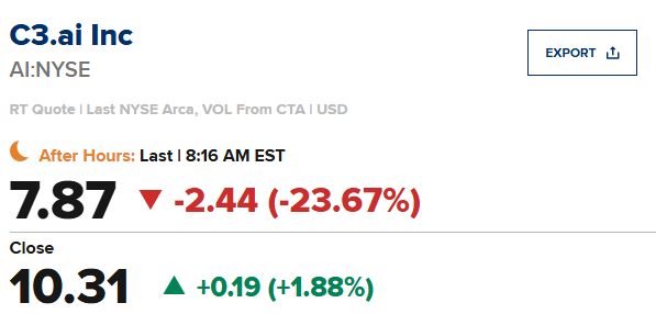 Citizens将C3.ai (AI)的评级从跑赢大市降低至平于大市。
