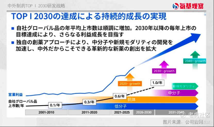 中外制药制定的TOP I 2030战略,为研发发展定下清晰方向:通过研发产出倍增及小分子、抗体、中分子等多形态战略,实现世界最高水平的药物研发,目标是每年上市一个新产品。