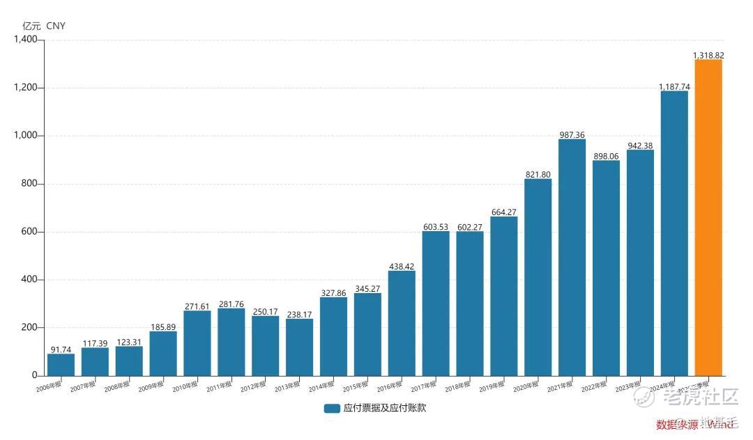 美的集团和海尔智家不遑多让,应收票据和应付账款2025年前三季度分别为1318.82亿元和750.73亿元。
