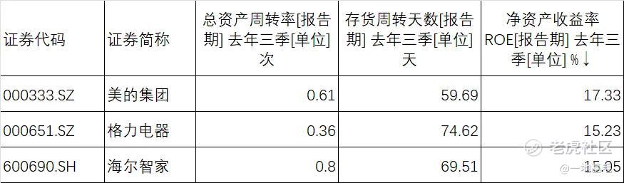 需要提到的是,在运营能力方面格力要弱于美的和海尔智家,总资产周转天数和存货周转天数均低于其他两家公司。
