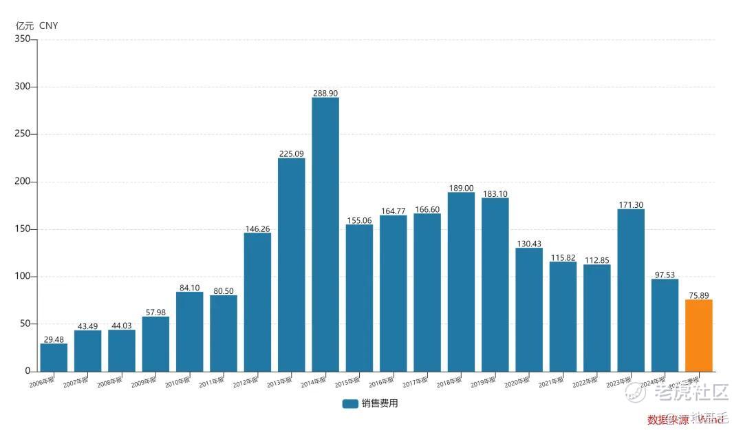 最明显的就是销售费用,2014年的时候,格力的销售费用还高达288.90亿元,而近些年则基本维持在百亿元附近,2024年更是跌至了百亿元下方;2025年前三季度,销售费用进一步压缩了11.3%,只有75.89亿元。