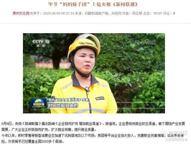 截至2024年,据官方数据,美团平台月均配送员数量就达到了336万,其中超过200万是来自县域的农民工,央视《新闻联播》还曾特别报道了“妈妈骑手团”的动人故事,对美团等平台在促就业、完善职业保障、试点养老保险等方面的贡献给予肯定。
